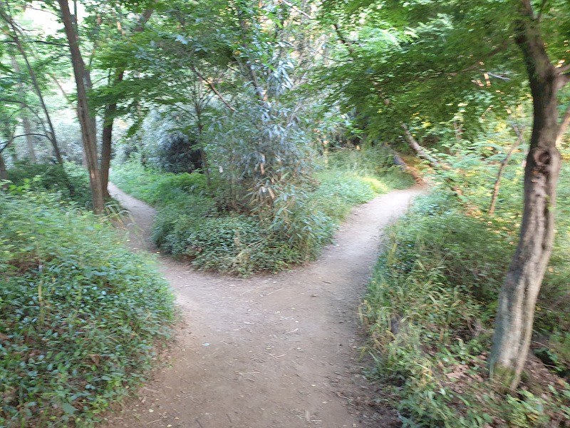 ▶.두갈래 길:왼쪽은 대나무 숲길(좀 쉬운 길), 오른쪽은 오르막 길(황방산의 클라이막스?)_여길 오르면 땀이 최고조죠