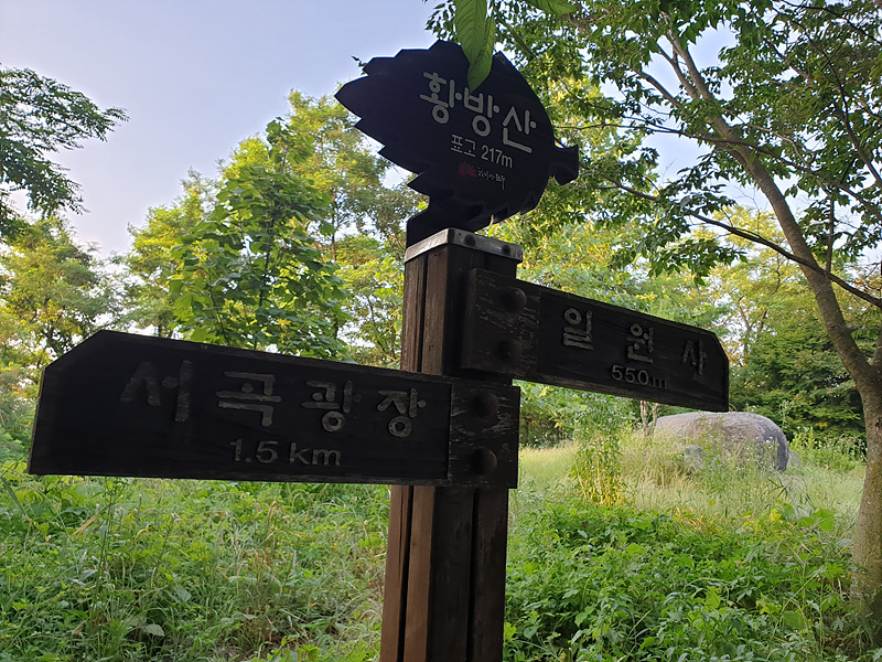 ▶.황방산 표고 217m, 일원사가 550m 남았고 1.5km를 오셨습니다